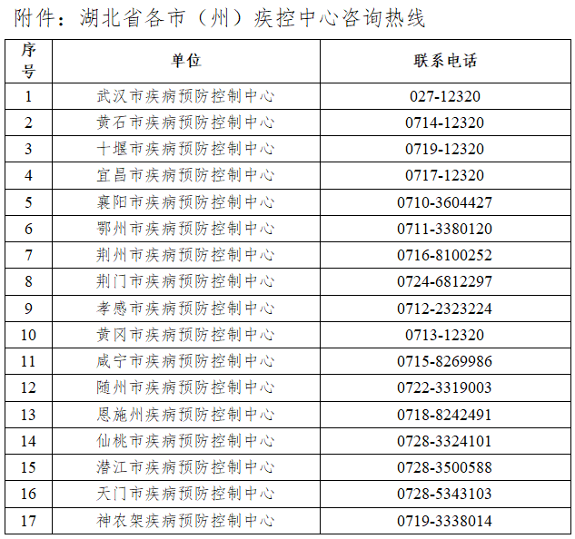 一、2021年12月19日(含)以来有河南省洛阳市新安县旅居史的来鄂返鄂人员在做好个人防护的情况下,请主动向当地社区进行健康申报,并配合当地疫情防控指挥部的所有防控措施。如有疑问或转码有误可拨打我省各级疾控中心咨询热线(号码附后)。
