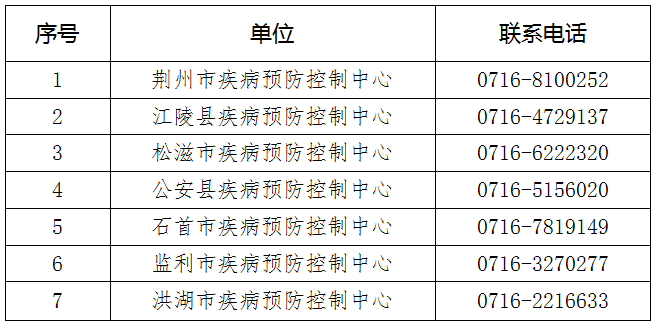附:荆州市各疾控中心咨询热线