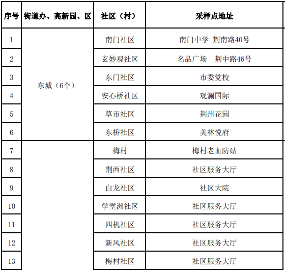荆州区便民核酸采样点