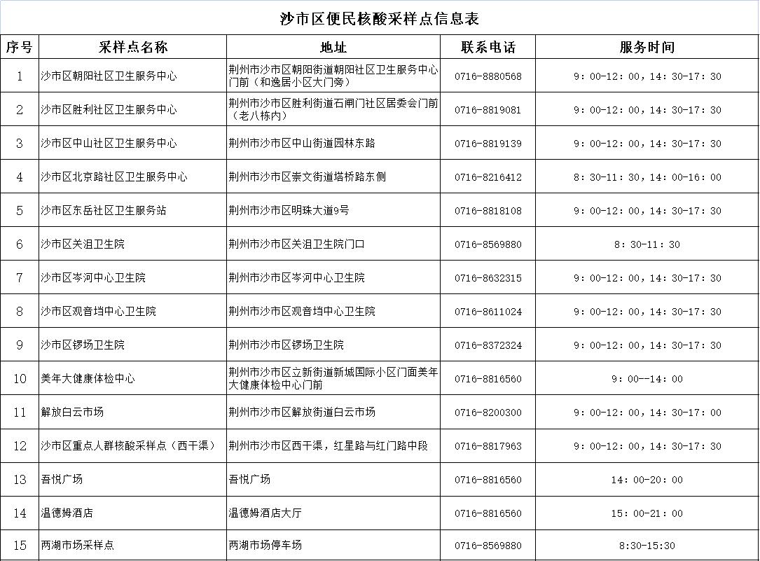 沙市区便民核酸采样点