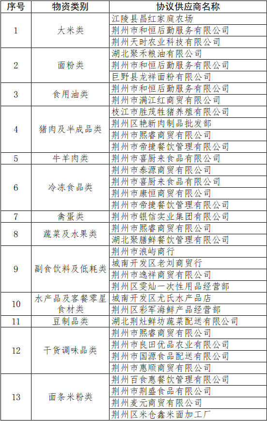 经评议组成员集中评议,以下29家协议供应商报价材料规范、品种齐全,符合饮食服务中心规定的供货条件,确定为饮食服务中心2025年11月份指定供货商。现公告如下: