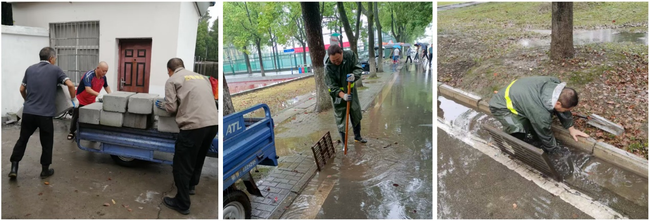 14日上午天公不作美,连绵不绝的大雨却未能阻挡物业人的脚步。他们在雨中持续作业,清运垃圾、疏通积水,坚守岗位不退缩。